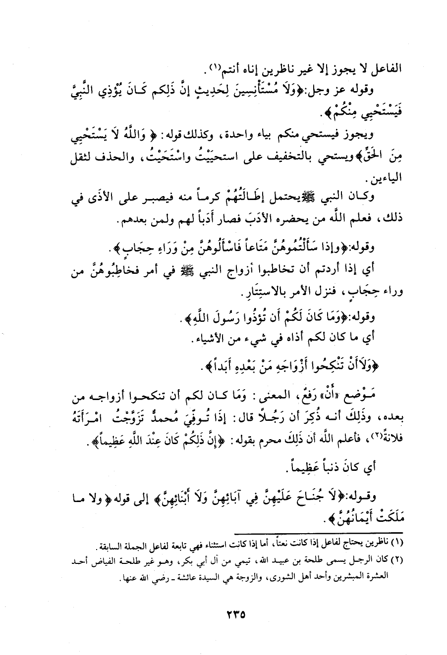 وقوله عزَّ وجلَّ: (وَلَا مُسْتَأْنِسِينَ لِحَدِيثٍ إِنَّ ذَلِكُمْ كَانَ يُؤْذِي النَّبِيَّ فَيَسْتَحْيِي مِنْكُمْ).