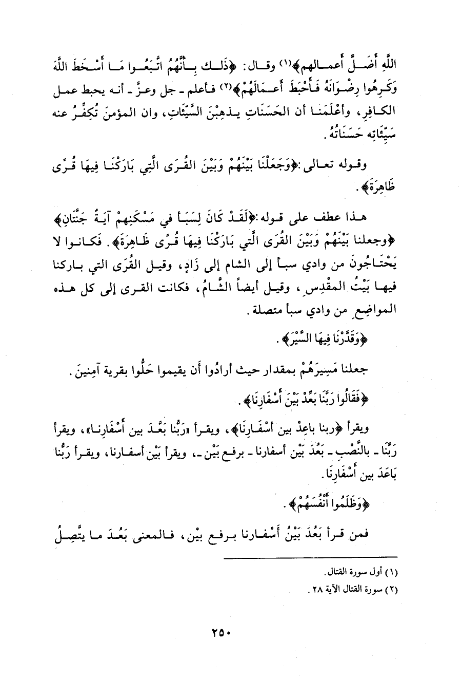 (وَجَعَلْنَا بَيْنَهُمْ وَبَيْنَ الْقُرَى الَّتِي بَارَكْنَا فِيهَا قُرًى ظَاهِرَةً).