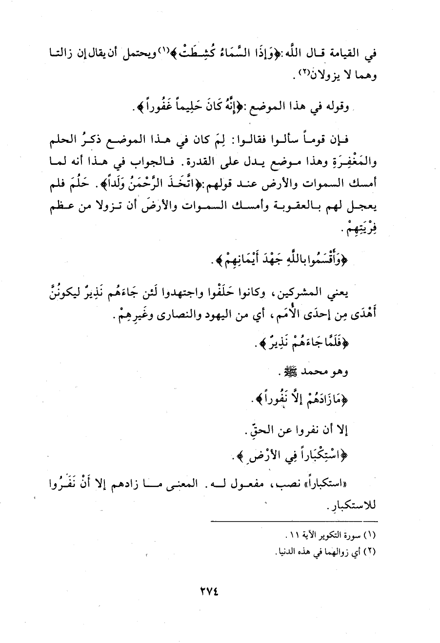 (وَأَقْسَمُوا بِاللَّهِ جَهْدَ أَيْمَانِهِمْ لَئِنْ جَاءَهُمْ نَذِيرٌ لَيَكُونُنَّ أَهْدَى مِنْ إِحْدَى الْأُمَمِ فَلَمَّا جَاءَهُمْ نَذِيرٌ مَا زَادَهُمْ إِلَّا نُفُورًا (42)