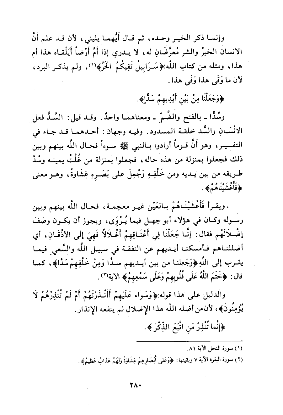 (وَجَعَلْنَا مِنْ بَيْنِ أَيْدِيهِمْ سَدًّا وَمِنْ خَلْفِهِمْ سَدًّا فَأَغْشَيْنَاهُمْ فَهُمْ لَا يُبْصِرُونَ