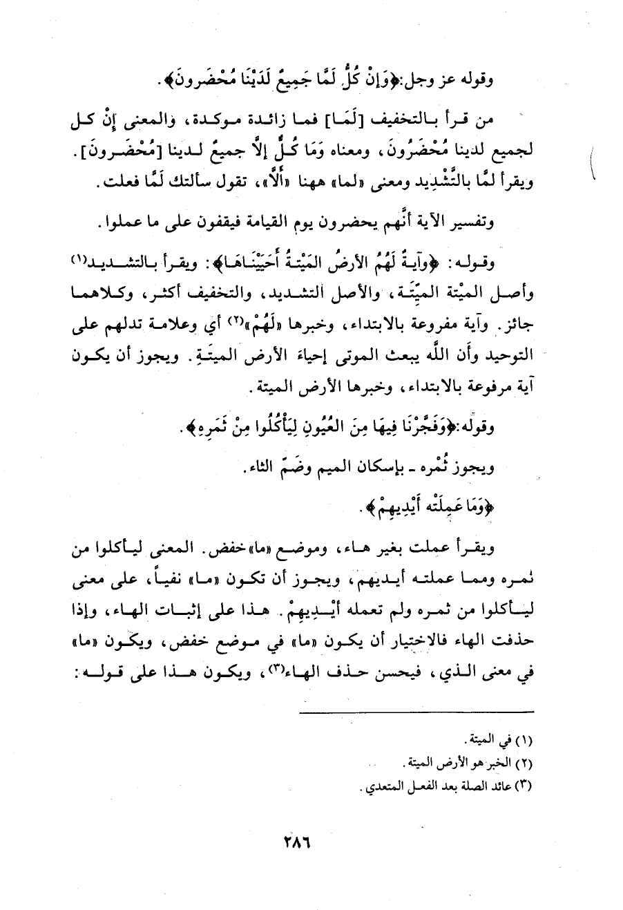 الثالث: أنها نكرةٌ موصوفةٌ، والكلامُ فيها كالذي في الموصولة. والرابع: أنها مصدريةٌ أي: ومِنْ عَمَلِ أيديهم. والمصدرُ واقعٌ موقعَ المفعولِ به، فيعودُ المعنى إلى معنى الموصولة أو الموصوفة. اهـ (الدُّرُّ المصُون).