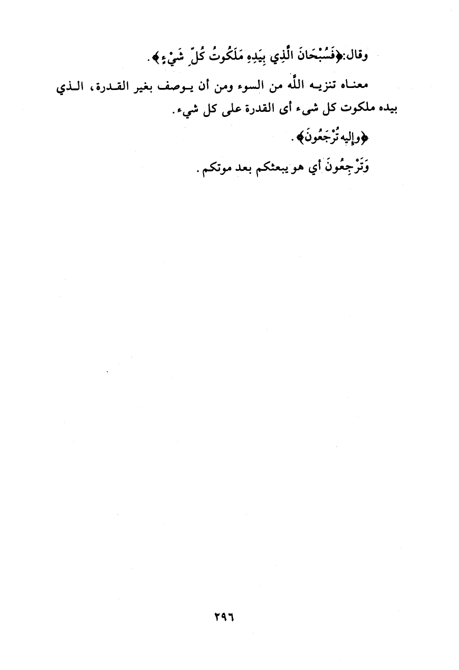 وقال: (فَسُبْحَانَ الَّذِي بِيَدِهِ مَلَكُوتُ كُلِّ شَيْءٍ وَإِلَيْهِ تُرْجَعُونَ (83)