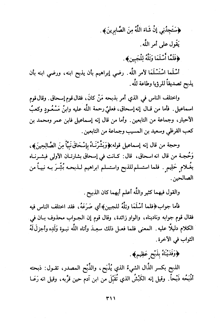 وحجة من قال إنه إسماعيل قوله: (وَبَشَّرْنَاهُ بِإِسْحَاقَ نَبِيًّا مِنَ الصَّالِحِينَ (112).