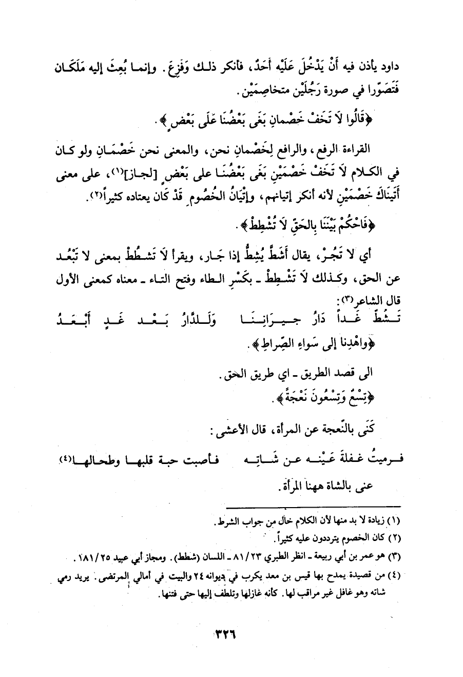 (قَالُوا لَا تَخَفْ خَصْمَانِ بَغَى بَعْضُنَا عَلَى بَعْضٍ).