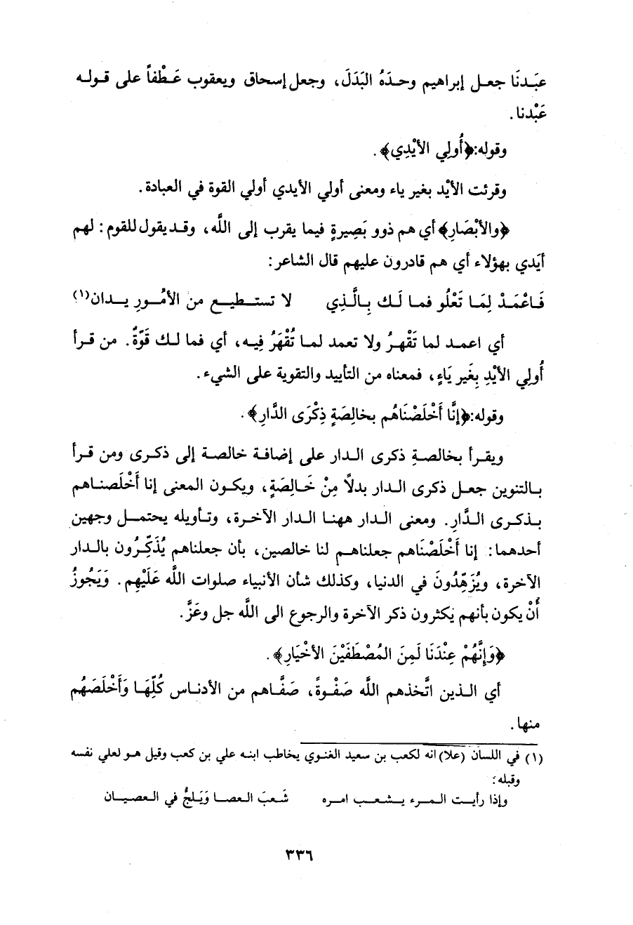 وقوله: (إِنَّا أَخْلَصْنَاهُمْ بِخَالِصَةٍ ذِكْرَى الدَّارِ (46)