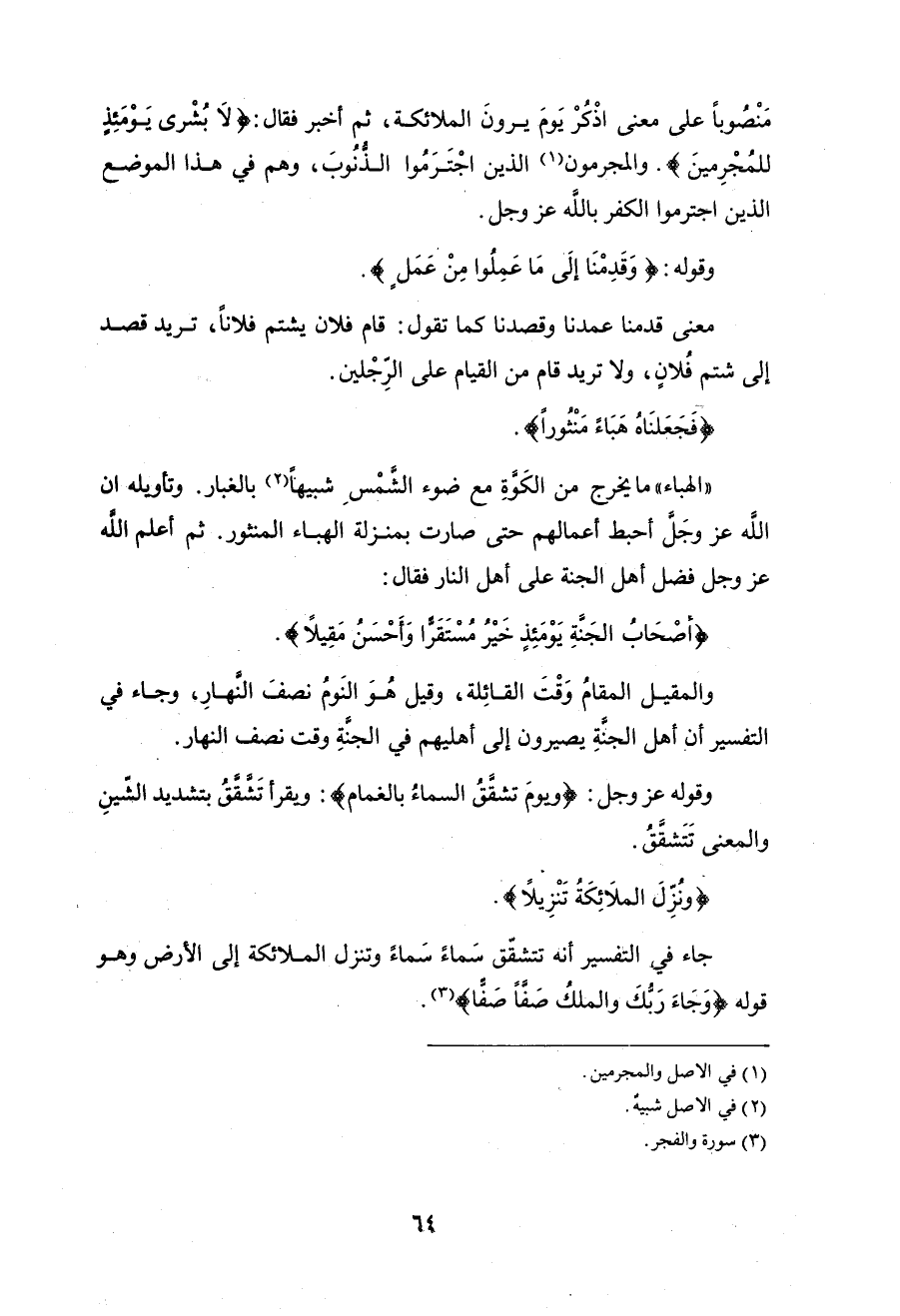 وقوله عزَّ وجلَّ: (وَيَوْمَ تَشَقَّقُ السَّمَاءُ بِالْغَمَامِ وَنُزِّلَ الْمَلَائِكَةُ تَنْزِيلًا (25)