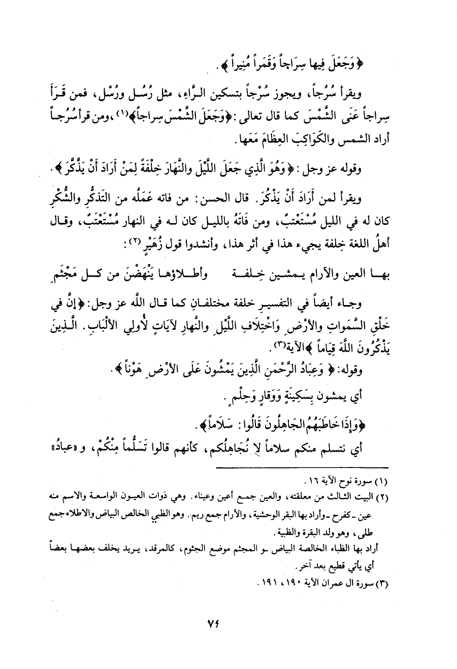 ومن قرأ (سُرُجاً) أراد الشمس والكَوَاكِبَ العِظَامَ مَعَها (1).
