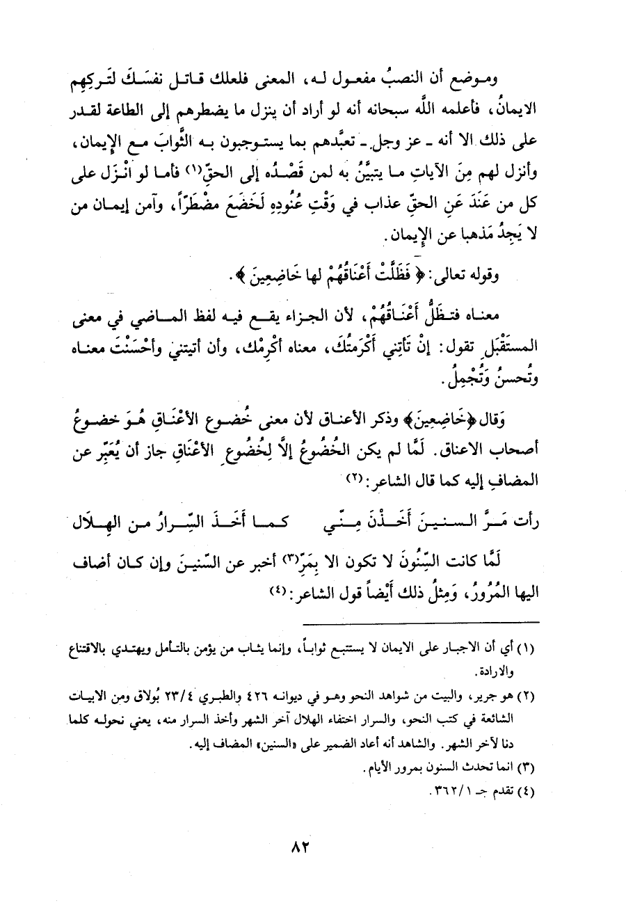 وقوله تعالى: (إِنْ نَشَأْ نُنَزِّلْ عَلَيْهِمْ مِنَ السَّمَاءِ آيَةً فَظَلَّتْ أَعْنَاقُهُمْ لَهَا خَاضِعِينَ (4)
