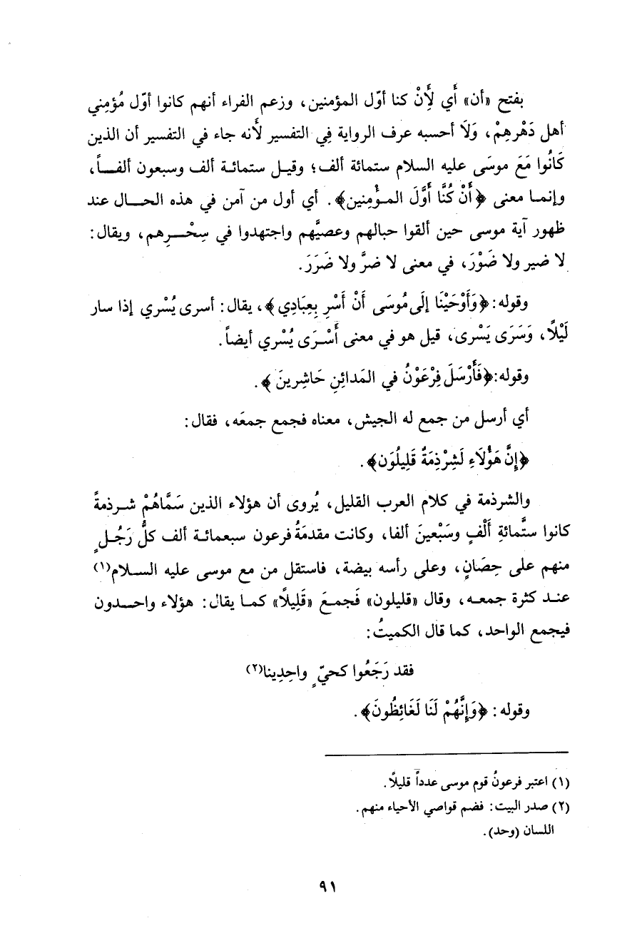 أهل دَهْرهِمْ، وَلاَ أحسبه عرف الرواية فِي التفسير لأَنه جاء في التفسير أن الذين كَانُوا مَعَ موسَى عليه السلام ستمائة ألف.