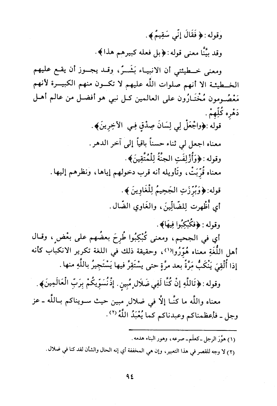 ومعنى خطيئتي أن الأنبياء بَشَر، وقد يجوز أن يقع عليهم