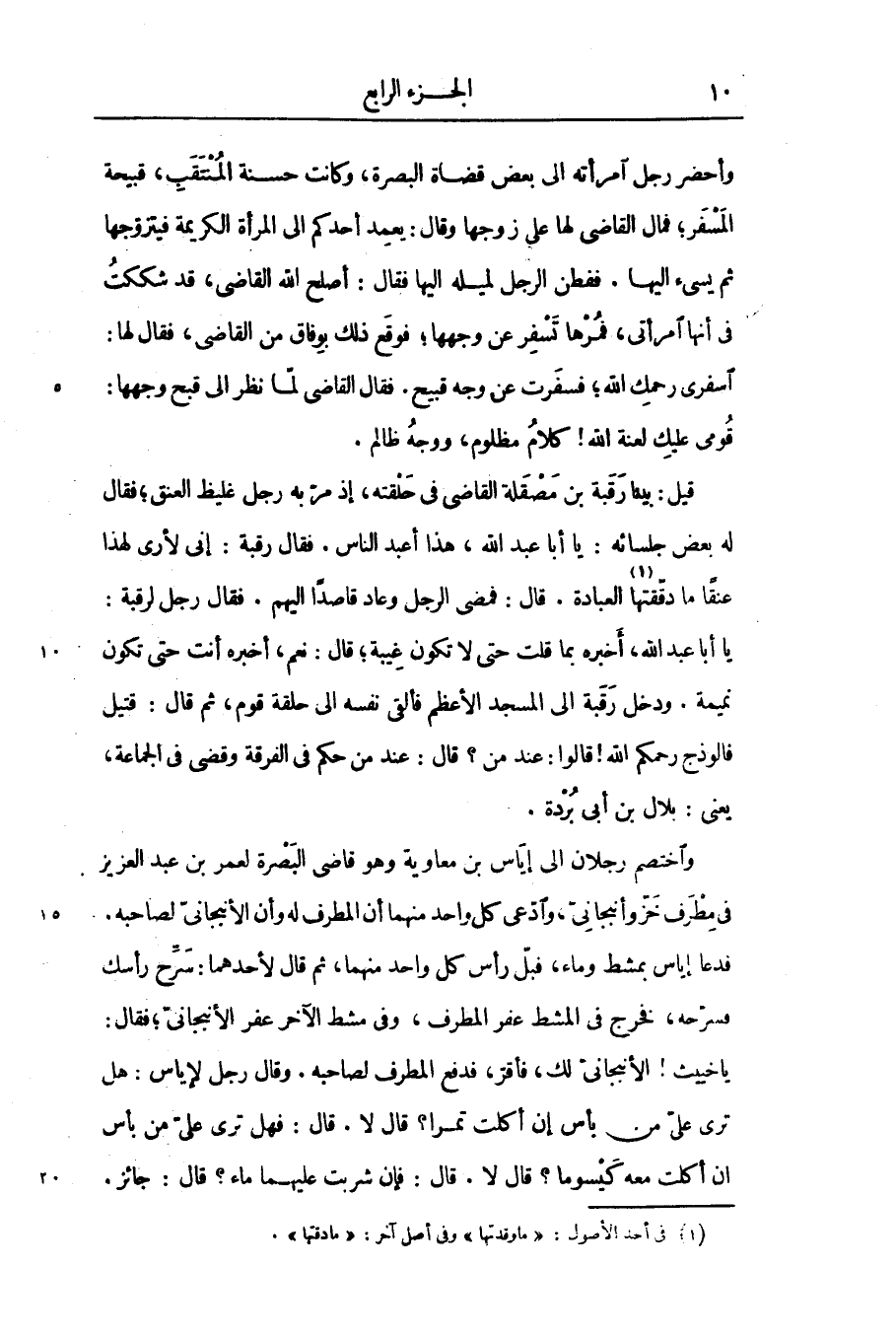 يا أبا عبد الله، أخبره بما قلت حتى لا تكون غيبة؛ قال: نعم، أخبره أنت حتى تكون نميمة. ودخل رقبة الى المسجد الأعظم فألقى نفسه الى حلقة قوم، ثم قال: قتيل فالوذج رحمكم الله! قالوا: عند من؟ قال: عند من حكم في الفرقة وقضى في الجماعة، يعنى: بلال بن أبى بردة.