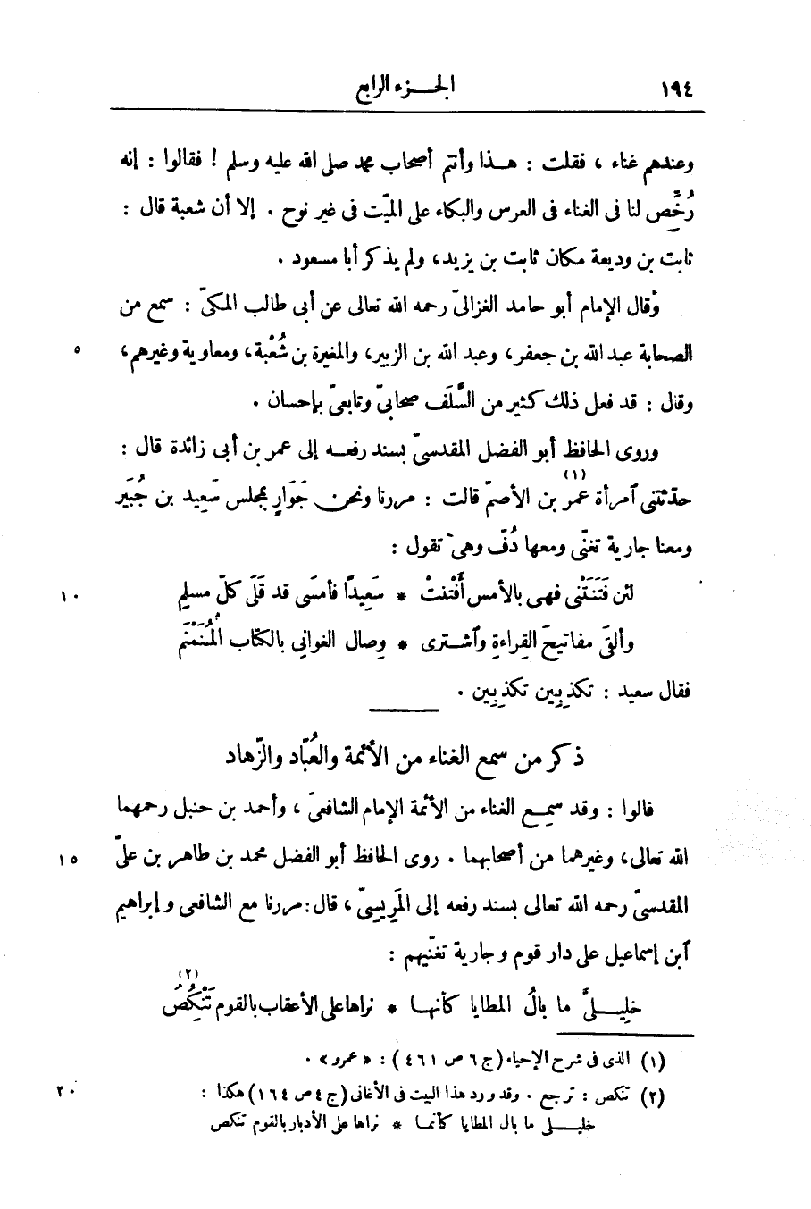 ذكر من سمع الغناء من الأئمة والعبّاد والزّهاد