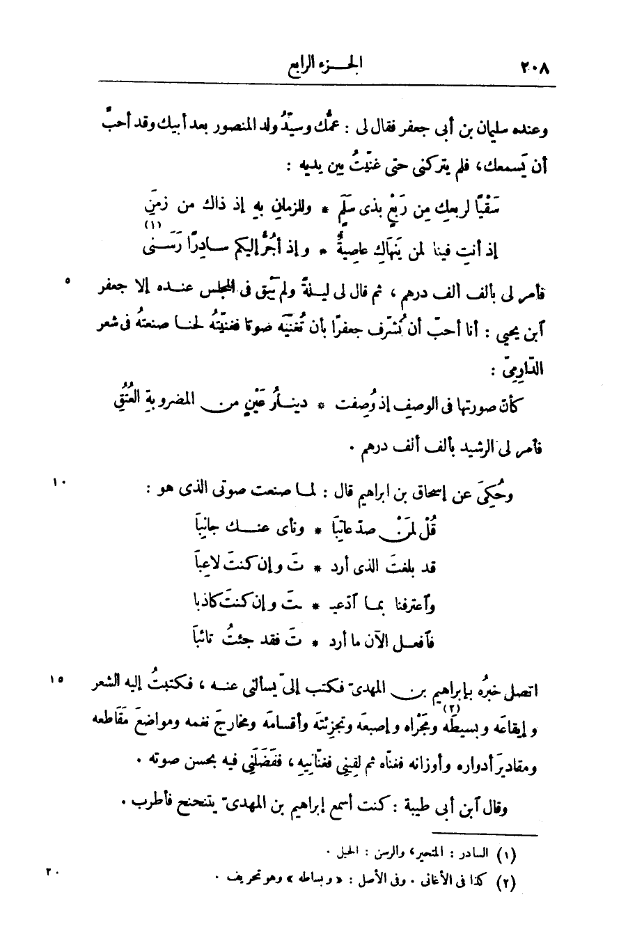 اتصل خبره بإبراهيم بن المهدىّ فكتب إلىّ يسألنى عنه، فكتبت إليه الشعر وإيقاعه وبسيطه «2» ومجراه وإصبعه وتجزئته وأقسامه ومخارج نغمه ومواضع مقاطعه ومقادير أدواره وأوزانه فغنّاه ثم لقينى فغنّانيه، ففضلنى فيه بحسن صوته.