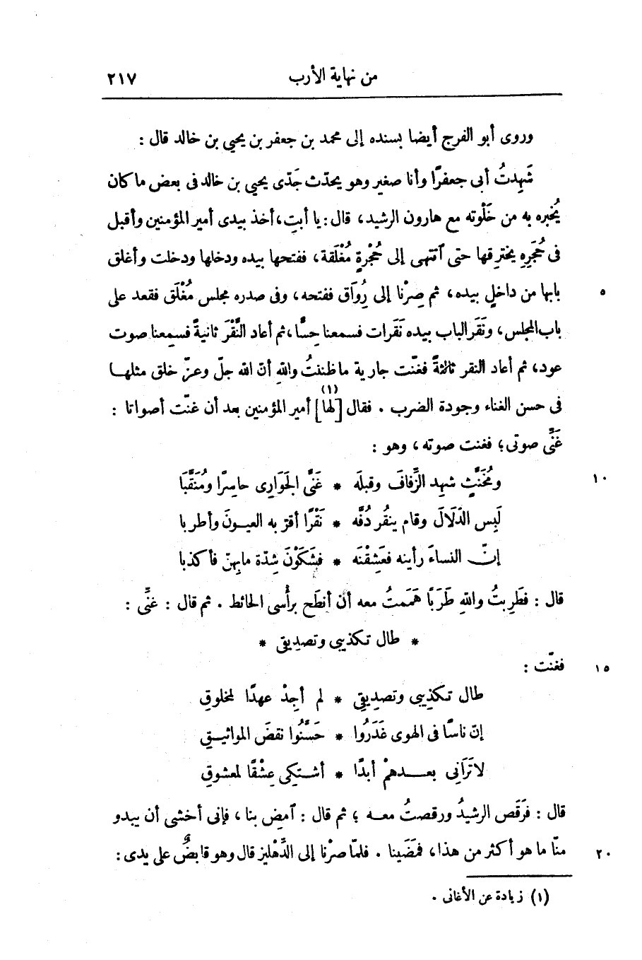 وروى أبو الفرج أيضا بسنده إلى محمد بن جعفر بن يحيى بن خالد قال: