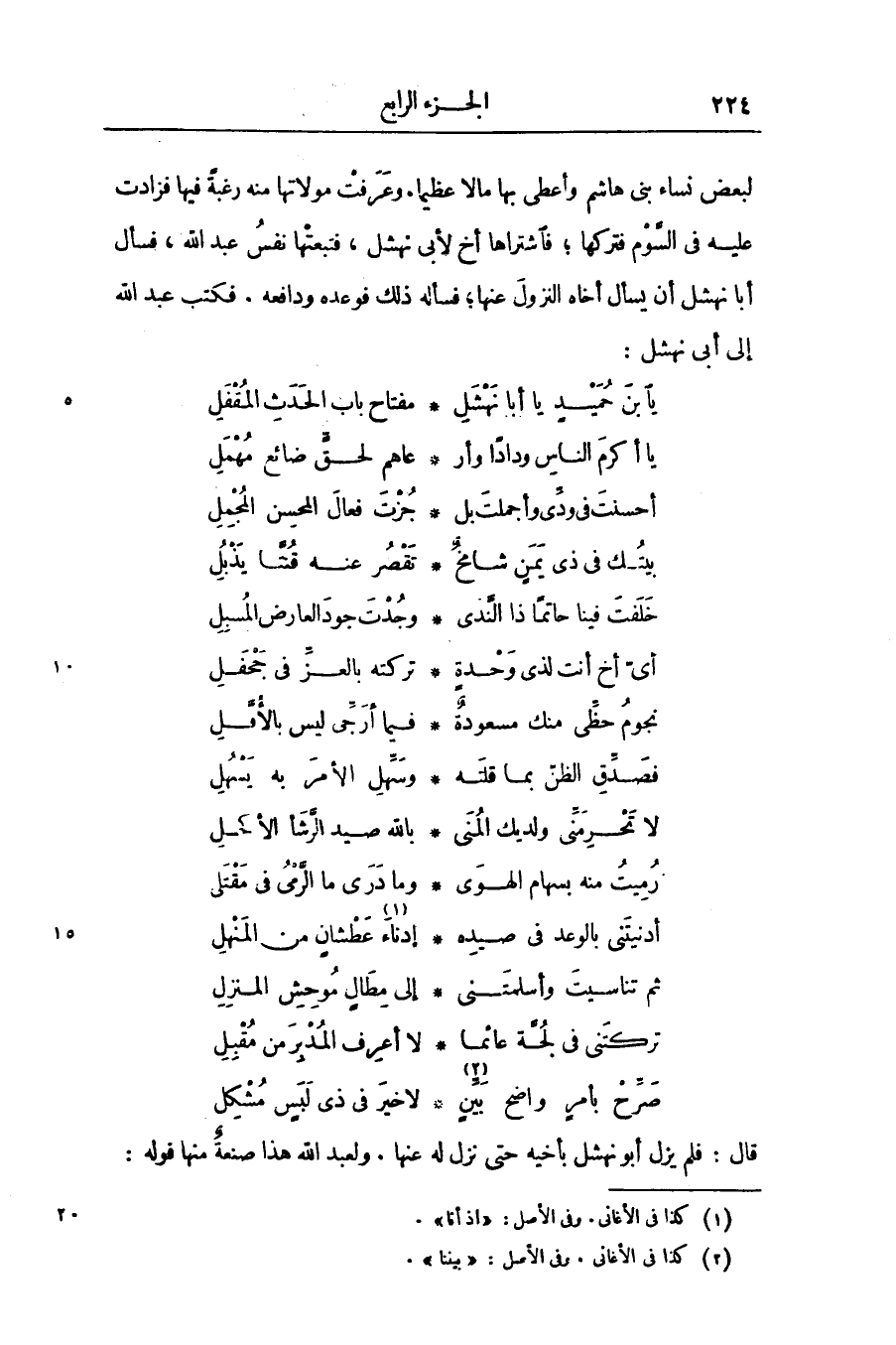 قال: فلم يزل أبو نهشل بأخيه حتى نزل له عنها. ولعبد الله هذا صنعة منها قوله: