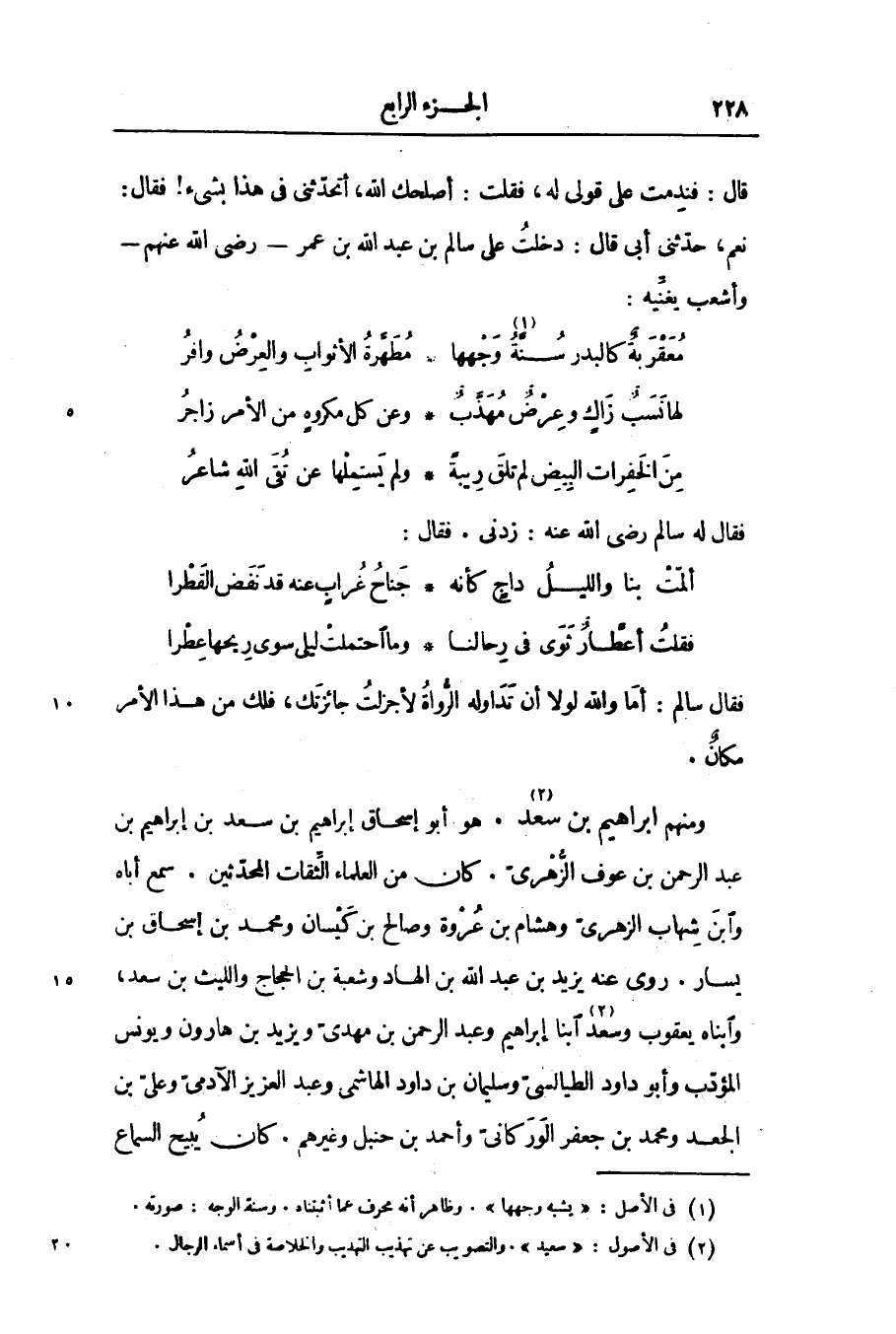 «2» . هو أبو إسحاق إبراهيم بن سعد بن إبراهيم بن عبد الرحمن بن عوف الزّهرىّ. كان من العلماء الثّقات المحدّثين. سمع أباه وابن شهاب الزهرىّ وهشام بن عروة وصالح بن كيسان ومحمد بن إسحاق بن يسار. روى عنه يزيد بن عبد الله بن الهاد وشعبة بن الحجاج والليث بن سعد، وابناه يعقوب وسعد «3» ابنا إبراهيم وعبد الرحمن بن مهدىّ ويزيد بن هارون ويونس المؤدّب وأبو داود الطيالسىّ وسليمان بن داود الهاشمى وعبد العزيز الآدمىّ وعلىّ بن الجعد ومحمد بن جعفر الور كانىّ وأحمد بن حنبل وغيرهم. كان يبيح السماع