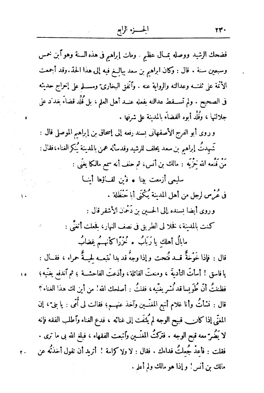 وروى أبو الفرج الأصفهانى بسند رفعه إلى إسحاق بن إبراهيم الموصلى قال: