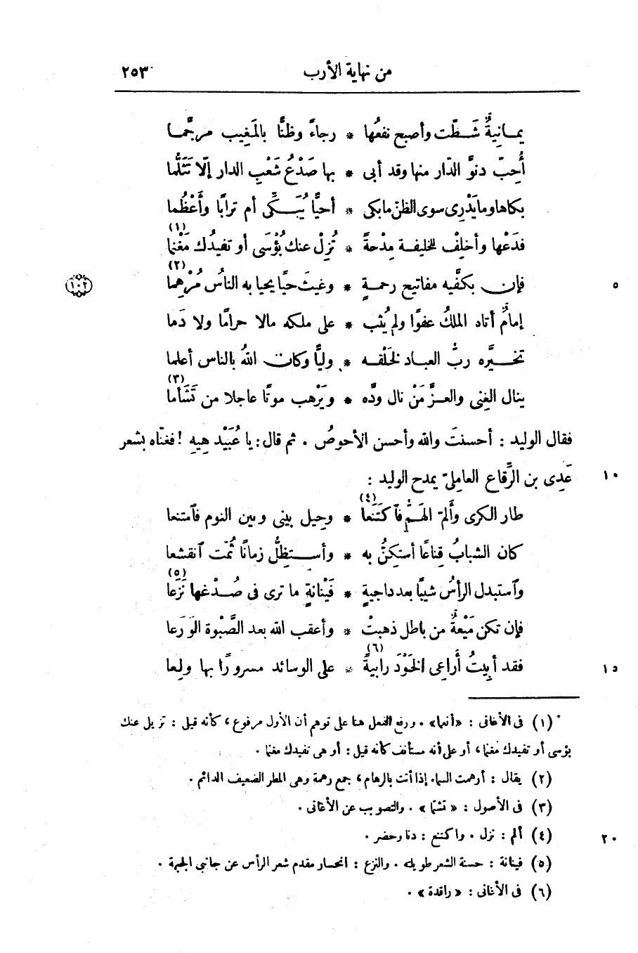 فقال الوليد: أحسنت والله وأحسن الأحوص. ثم قال: يا عبيد هيه! فغنّاه بشعر عدى بن الرّقاع العاملىّ يمدح الوليد:
