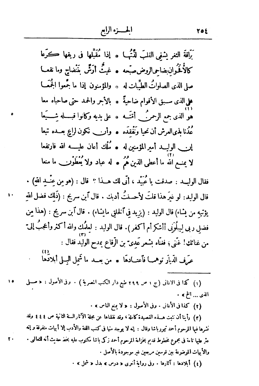 . قال الوليد: لعلمك والله أكثر وأعجب إلىّ من غنائك! غنّنى؛ فغنّاه بشعر عدىّ بن الرّقاع يمدح الوليد «3» فقال: