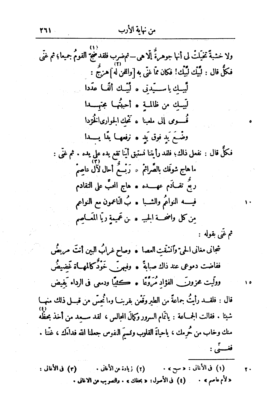 ولا خشبة تخيّلت لى أنها جوهرة إلّا هى- ثم ضرب فلقد ضجّ «1» القوم جميعا؛ ثم غنّى فكلّ قال: لبّيك لبّيك! فكان ممّا غنّى به [واللحن له»