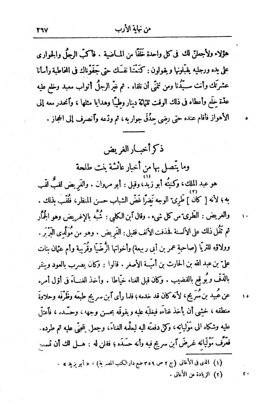 ذكر أخبار الغريض وما يتّصل بها من أخبار عائشة بنت طلحة