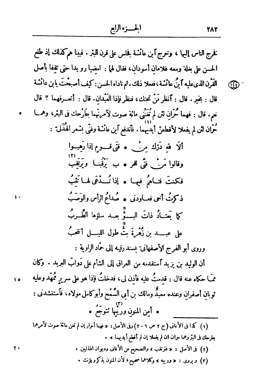 وروى أبو الفرج الأصفهانىّ بسند رفيه إلى حمّاد الراوية: