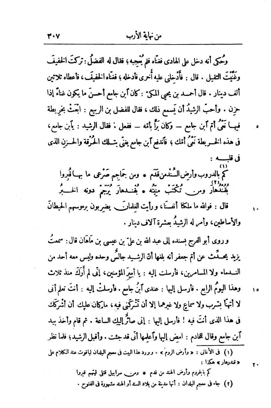 قال: فو الله ما ملكنا أنفسنا، ورأيت الغلمان يضربون برءوسهم الحيطان والأساطين، وأمر له الرشيد بعشرة آلاف دينار.