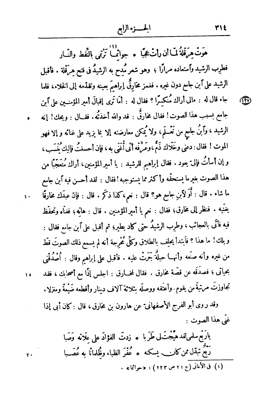 وقد روى أبو الفرج الأصفهانىّ عن هارون بن مخارق، قال: كان أبى إذا غنّى هذا الصوت: