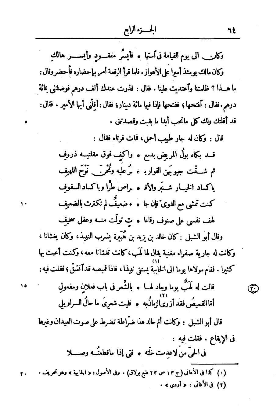 وقال أبو الشبل: كان خالد بن يزيد بن هبيرة يشرب النبيذ، وكان يغشانا، وكانت له جارية صفراء مغنية يقال لها لهب، كانت تغشانا معه، وكنت أعبث بها كثيرا. فقام مولاها يوما الى الخابية «1» يستقى نبيذا، فاذا قميصه قد انشقّ؛ فقلت فيه: