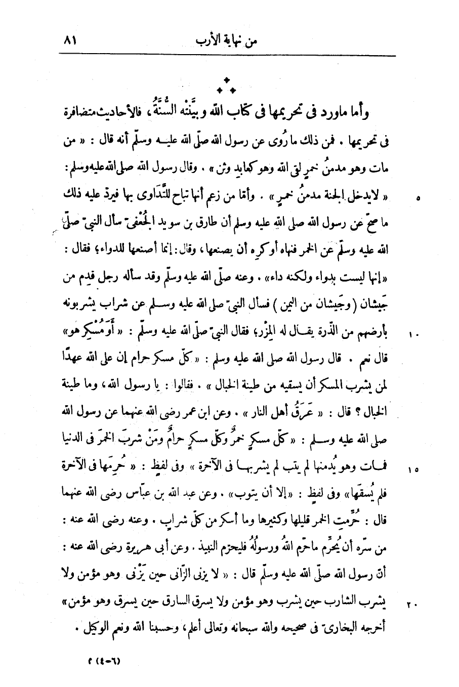 من سرّه أن يحرّم ما حرّم الله ورسوله فليحرّم النبيذ. وعن أبى هريرة رضى الله عنه: