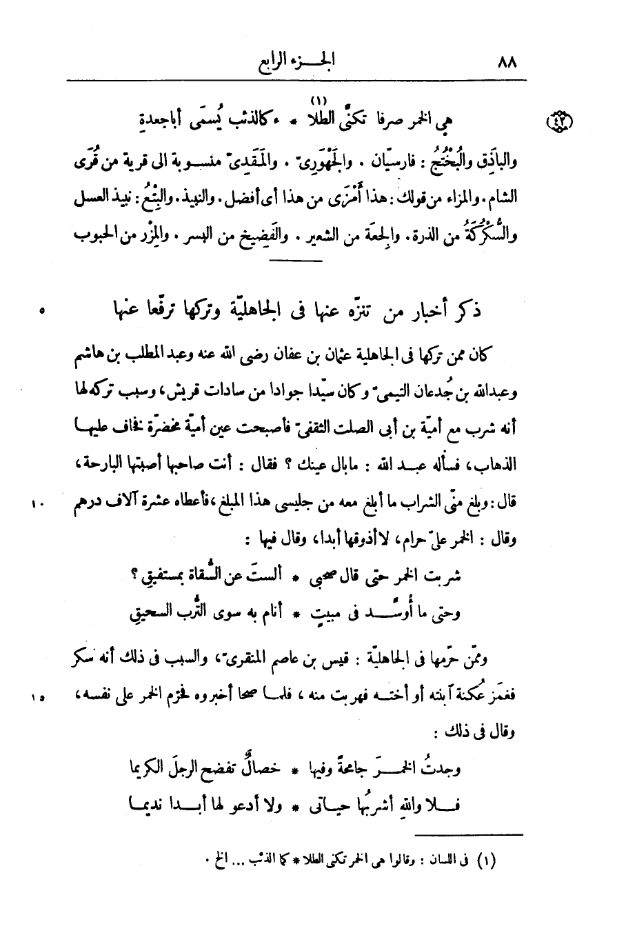 فلا والله أشربها حياتى ... ولا أدعو لها أبدا نديما