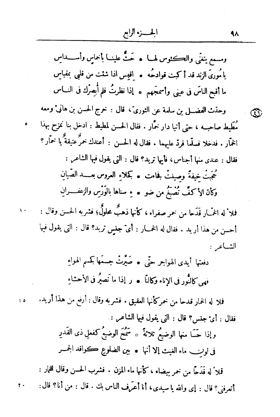 أحسن من هذا أريد. فقال له الخمار: أىّ جنس تريد؟ قال: التى يقول فيها الشاعر: