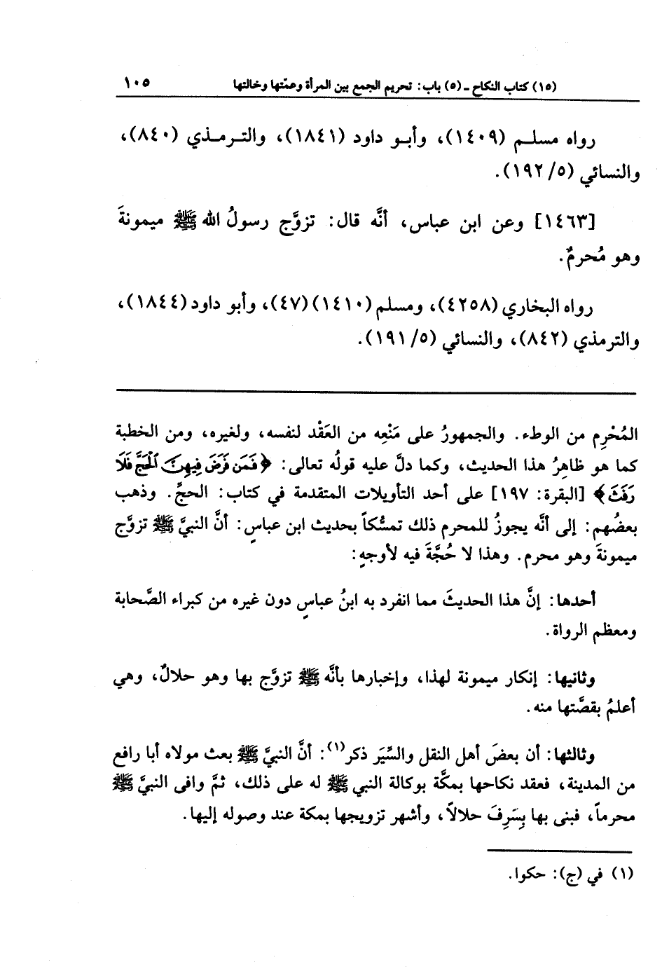 [1463] وعَن ابنَ عَبَّاسٍ أَنَّه قال تزوج رسول الله صَلَّى اللَّهُ عَلَيهِ وَسَلَّمَ مَيمُونَةَ وَهُوَ مُحرِمٌ.