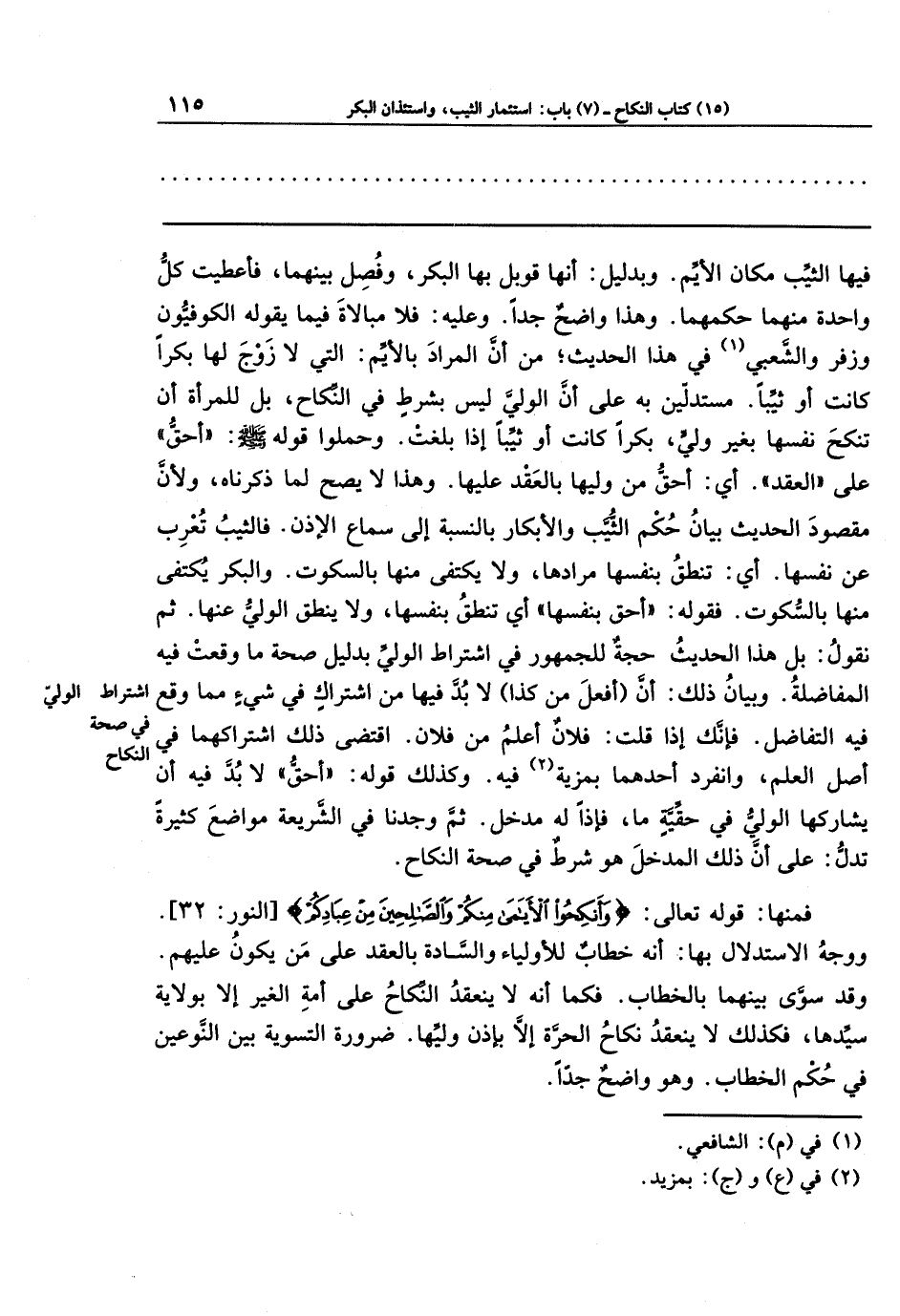 وعليه: فلا مبالاة بما يقوله الكوفيون وزفر والشعبي (¬1) في هذا الحديث؛ من أنَّ المراد بالأيَّم: التي لا زوج لها بكرًا كانت أو ثيبًا. مستدلين به على أن الولي ليس بشرط في النكاح، بل للمرأة أن تُنكِح نفسها بغير ولي، بكرًا كانت أو ثيبا إذا بلغت. وحملوا قوله صلى الله عليه وسلم: (أحق) على العقد؛ أي: أحقُّ من وليها بالعقد عليها.