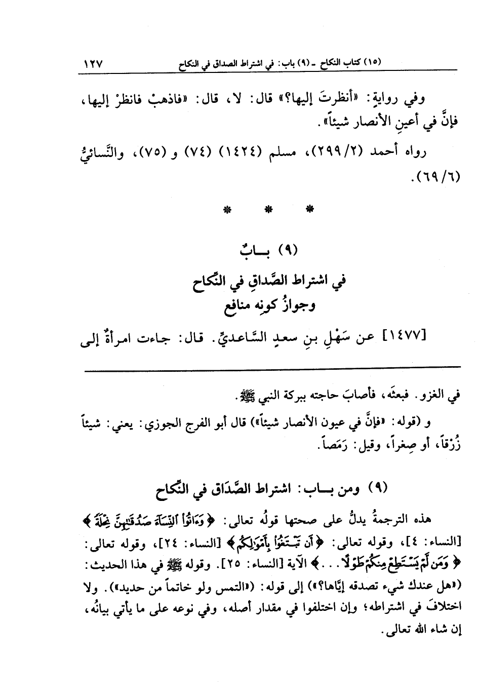 (9) ومن باب: اشتراط الصَّداق في النكاح
