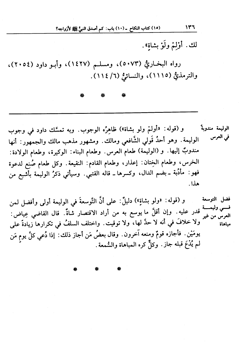 لَكَ. أَولِم وَلَو بِشَاةٍ.