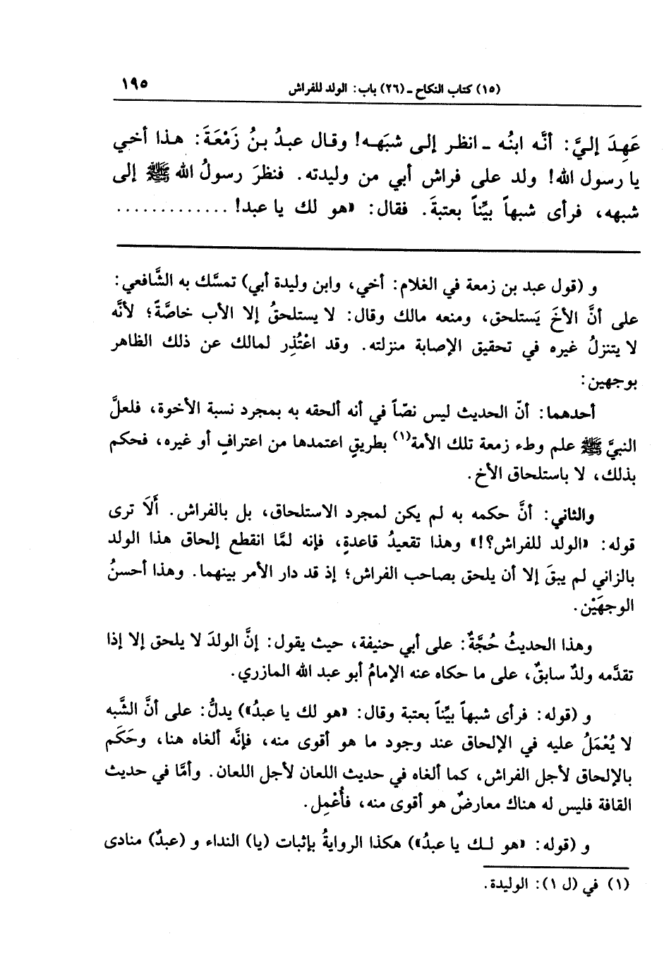 و(قوله: فرأى شبهًا بيِّنًا بعتبة، وقال: (هو لك يا عبد) يدلُّ على أن الشبه لا يعمل عليه في الإلحاق عند وجود ما هو أقوى منه، فإنَّه ألغاه هنا، وحكم بالإلحاق لأجل الفراش، كما ألغاه في حديث اللعان لأجل اللعان. وأمَّا في حديث القافة: فليس له هناك معارض هو أقوى منه، فأُعمِل.