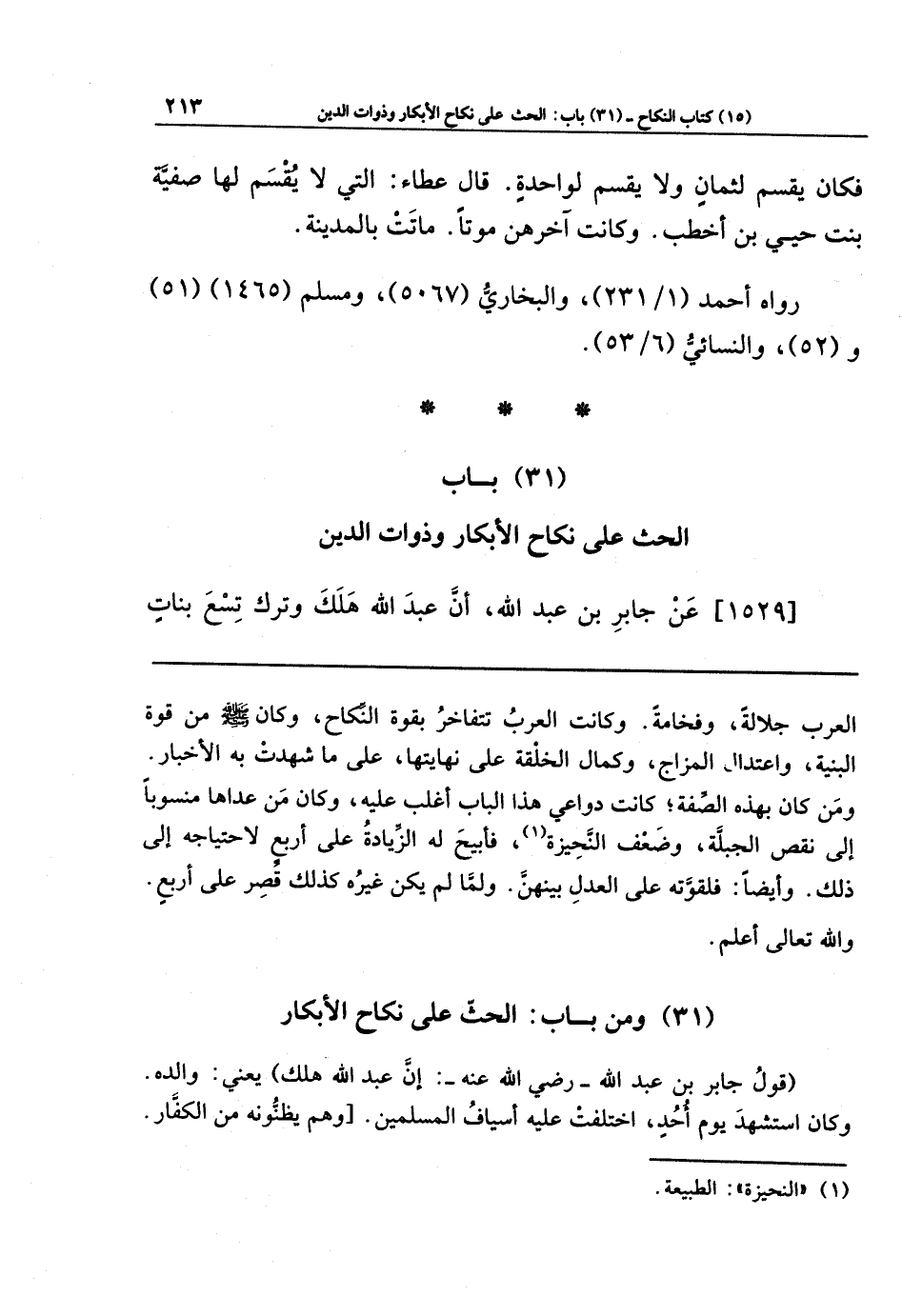 (31) باب الحث على نكاح الأبكار وذوات الدين