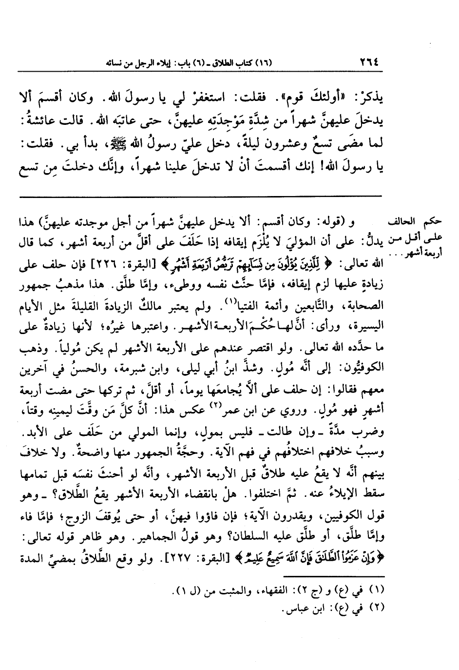 ثم اختلفوا: هل بانقضاء الأربعة الأشهر يقع الطلاق؟ وهو قول الكوفيين، ويقدرون الآية؛ فإن فاءوا فيهنَّ، أو حتى يوقف الزوج، فإمَّا فَاءَ، وإمَّا طلق، أو طلق عليه السلطان؟ وهو قول الجماهير، وهو ظاهر قوله تعالى: {وَإِن عَزَمُوا الطَّلاقَ فَإِنَّ اللَّهَ سَمِيعٌ عَلِيمٌ} ولو وقع الطلاق بمضيِّ المُدَّة؛