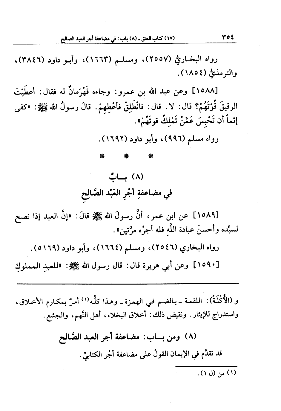 (8) ومن باب: مضاعفة أجر العبد الصالح
