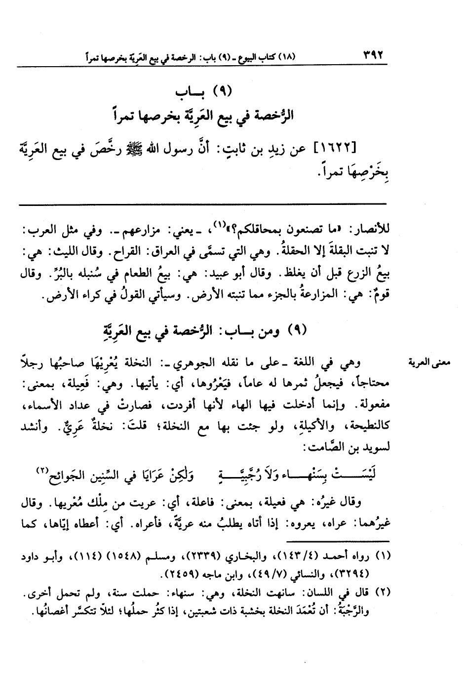 (9) ومن باب: الرُّخصة في بيع العَرِيَّةِ