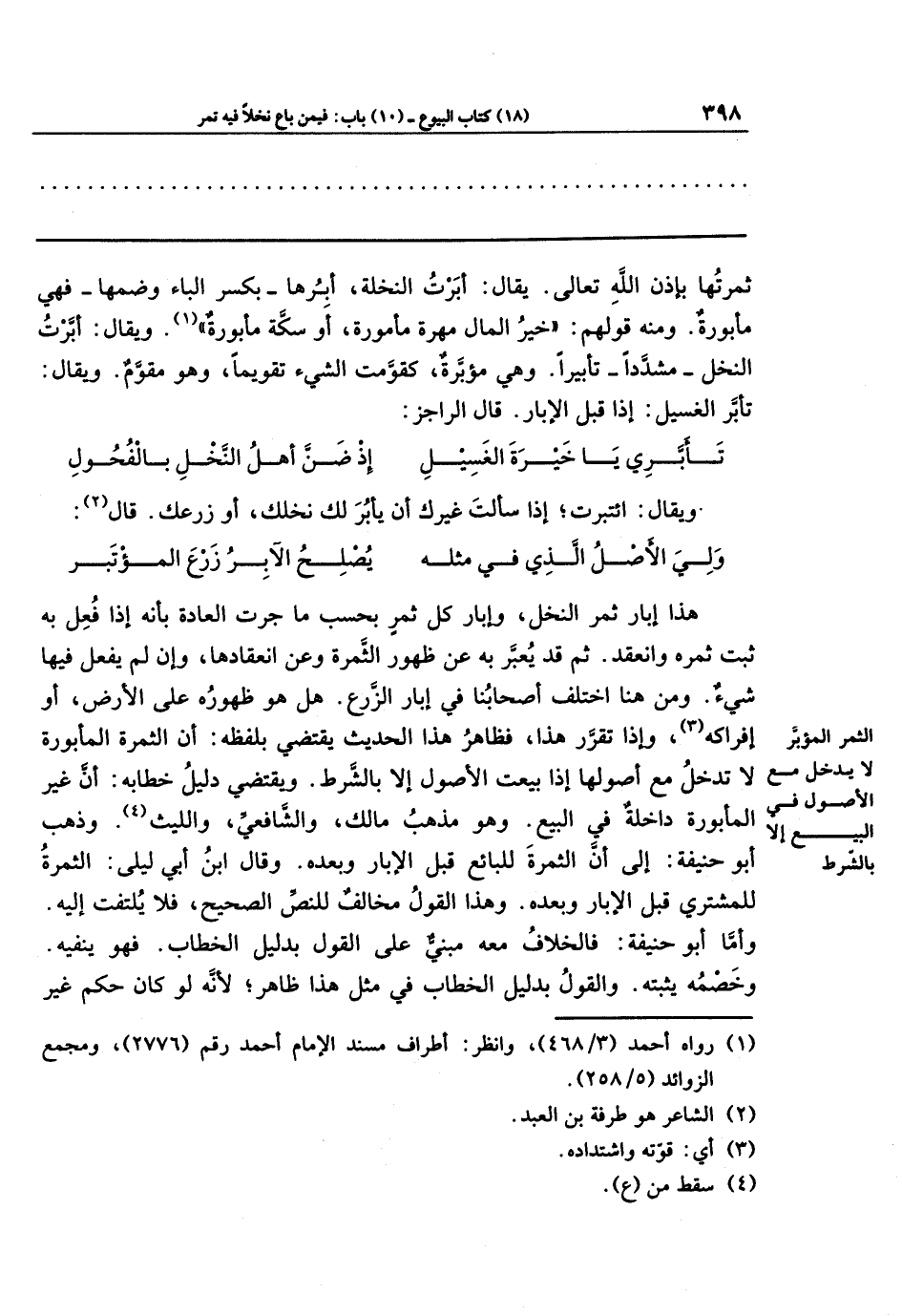 ويقال: ائتبرت؛ إذا سألت غيرك أن يأبُرَ لك نخلك، أو زرعك. قال (¬2):