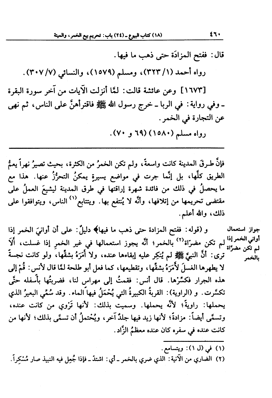 فإن طرق المدينة كانت واسعة، ولم تكن الخمر من الكثرة، بحيث تصير نهرًا يعم الطريق كلّها، بل إنما جرت في مواضع يسيرة يمكن التحرُّز عنها. هذا مع ما يحصل في ذلك من فائدة شهرة إراقتها في طرق المدينة ليشيع العمل على مقتضى تحريمها من إتلافها، وأنه لا ينتفع بها. ويتتابع (¬1) الناس، ويتوافقوا على ذلك، والله أعلم.