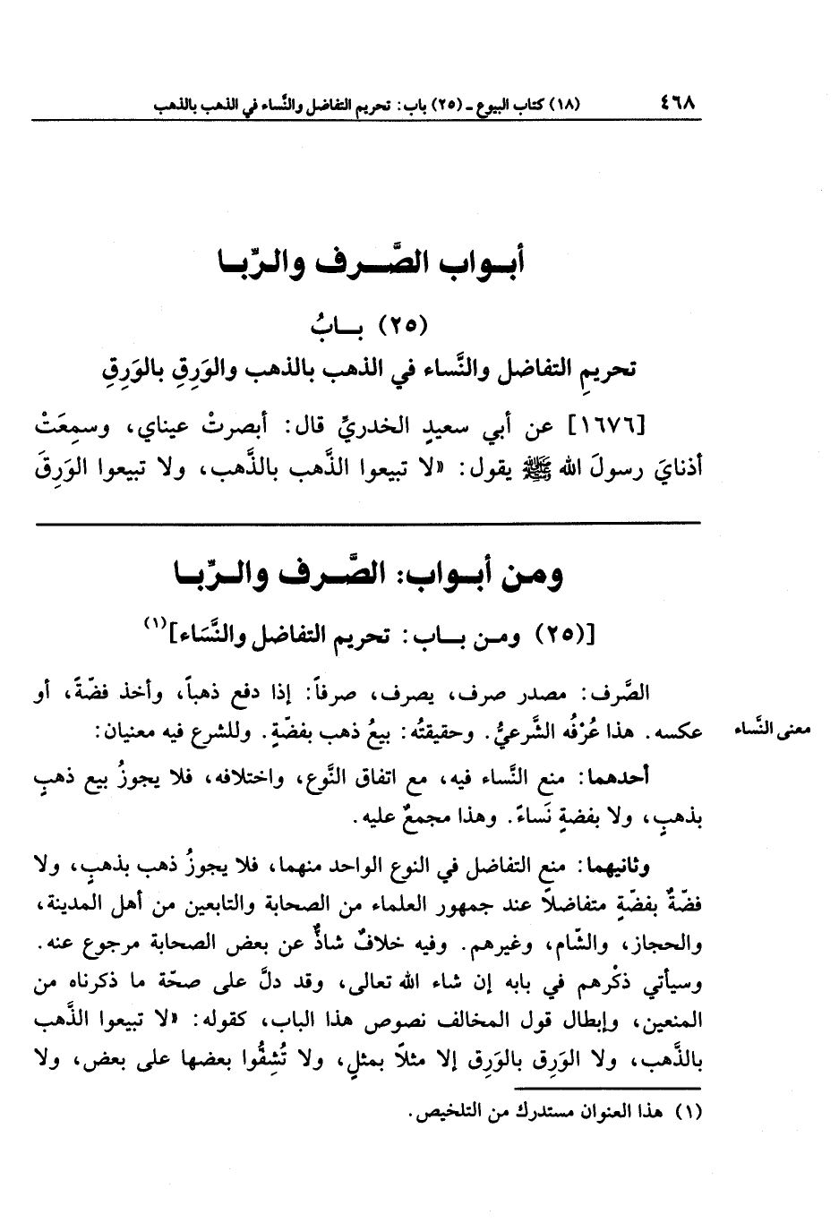 (25) ومن باب: تحريم التفاضل والنساء (¬1)