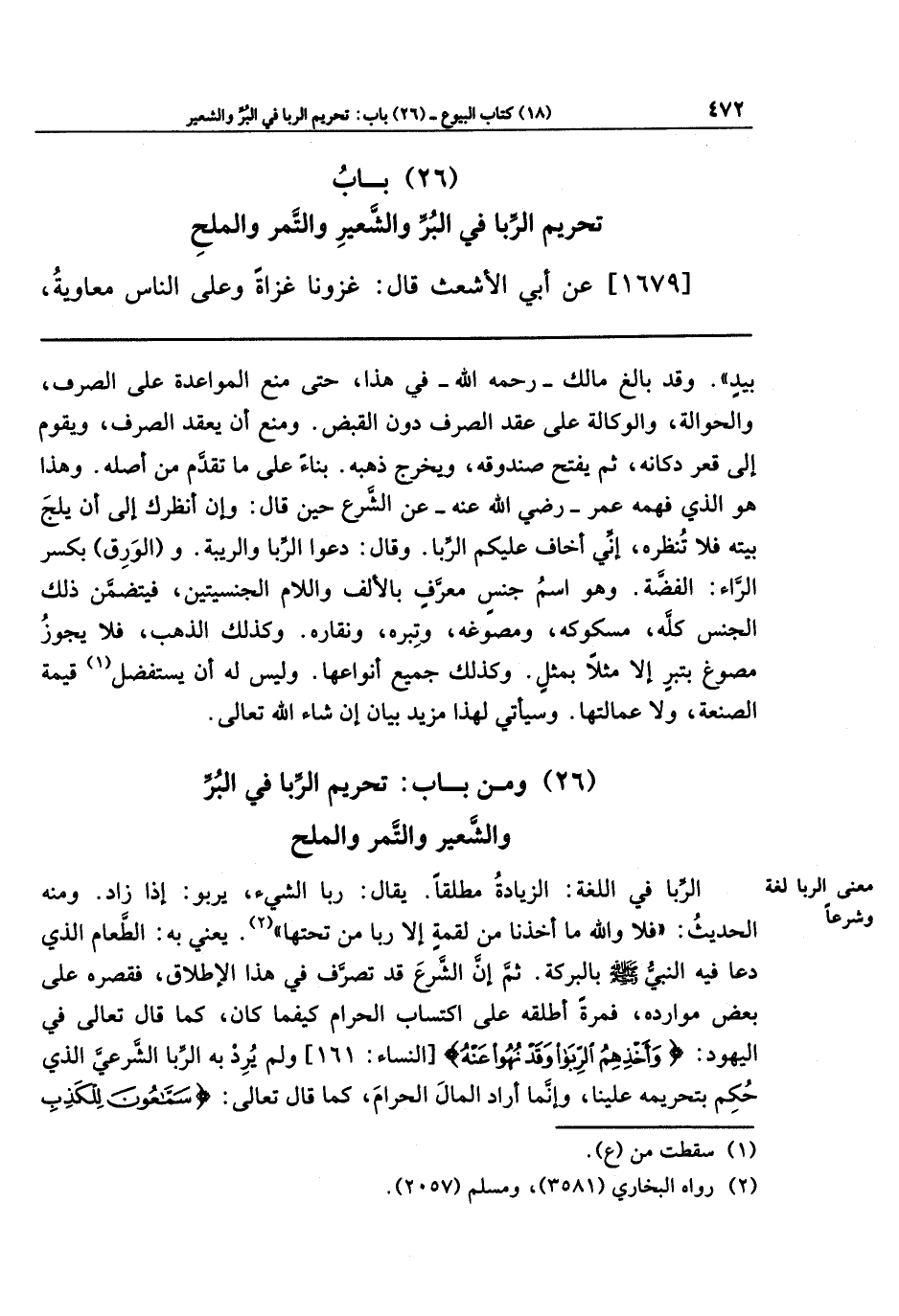 (26) ومن باب: تحريم الرِّبا في البُرِّ والشعير والتمر والملح