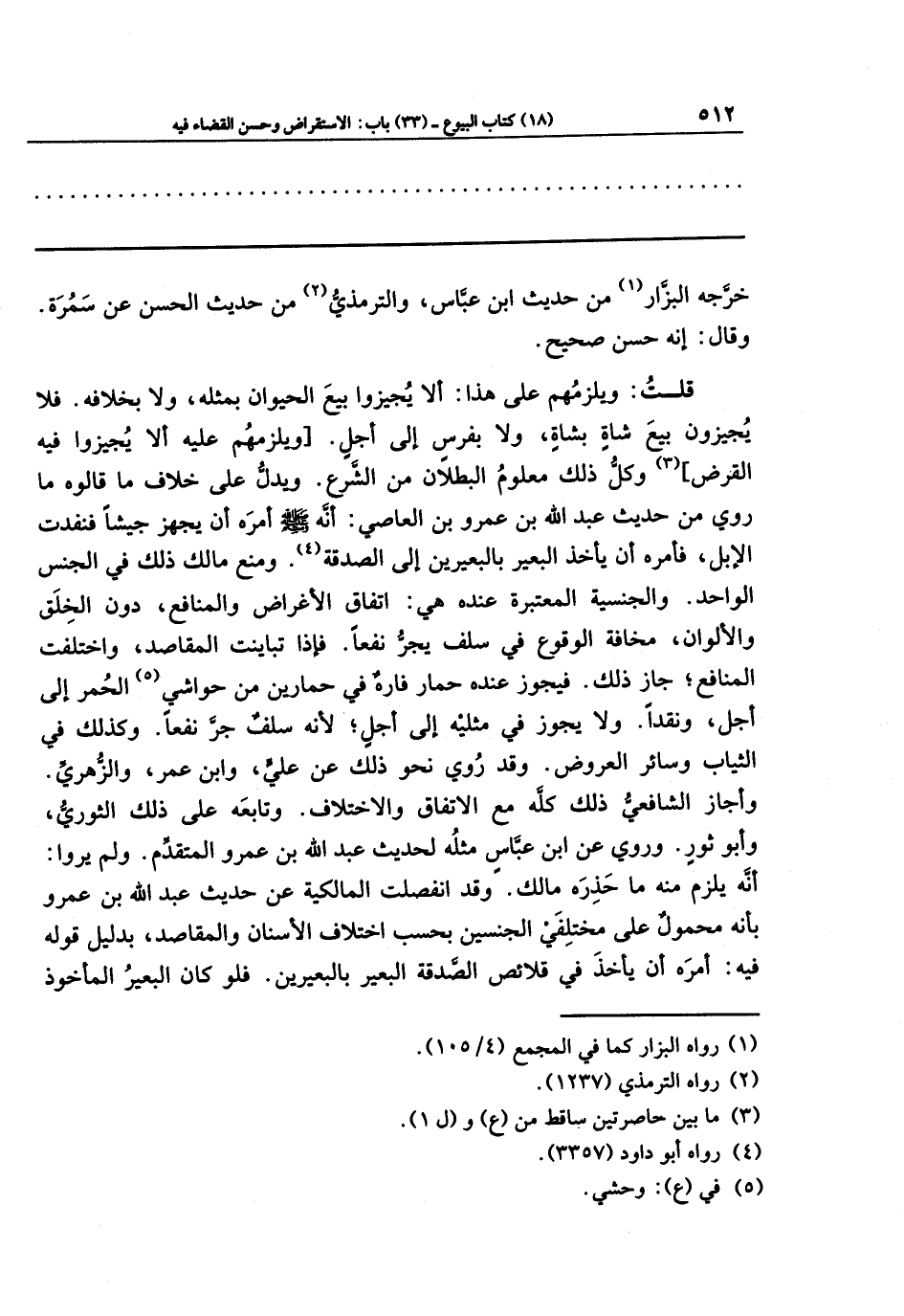قلت: ويلزمُهم على هذا: ألا يجيزوا بيع الحيوان بمثله، ولا بخلافه. فلا يجيزون بيع شاة بشاة، ولا بفرس إلى أجل. ويلزمهم عليه ألا يجيزوا فيه القرض (¬3)، وكل ذلك معلوم البطلان من الشرع. ويدل على خلاف ما قالوه ما روي من حديث عبد الله بن عمرو بن العاصي: أنه صلى الله عليه وسلم أمره أن يجهز جيشًا فنفدت الإبل، فأمره أن يأخذ البعير بالبعيرين إلى الصدقة (¬4). ومنع مالك ذلك في الجنس الواحد. والجنسية المعتبرة عنده هي اتفاق الأغراض والمنافع، دون الخلق والألوان، مخافة الوقوع في سلف يجرّ نفعًا. فإذا تباينت المقاصد، واختلفت المنافع؛ جاز ذلك. فيجوز عنده حمار فارهٌ في حمارين من حواشي (¬5) الحمر إلى أجل، ونقدًا. ولا يجوز في مثليه إلى أجل؛ لأنه سلف جرَّ نفعًا. وكذلك في الثياب وسائر العروض. وقد روي نحو ذلك عن عليّ، وابن عمر، والزهري. وأجاز الشافعي ذلك كله مع الاتفاق والاختلاف. وتابعه على ذلك الثوري، وأبو ثور. وروي عن ابن عباس مثله لحديث عبد الله بن عمرو المتقدم. ولم يروا: أنَّه يلزم منه ما حذره مالك. وقد انفصلت المالكية عن حديث عبد الله بن عمرو بأنه محمول على مختلفَي الجنسين بحسب اختلاف الأسنان والمقاصد، بدليل قوله فيه: أمره أن يأخذ في قلائص الصدقة البعير بالبعيرين. فلو كان البعير المأخوذ