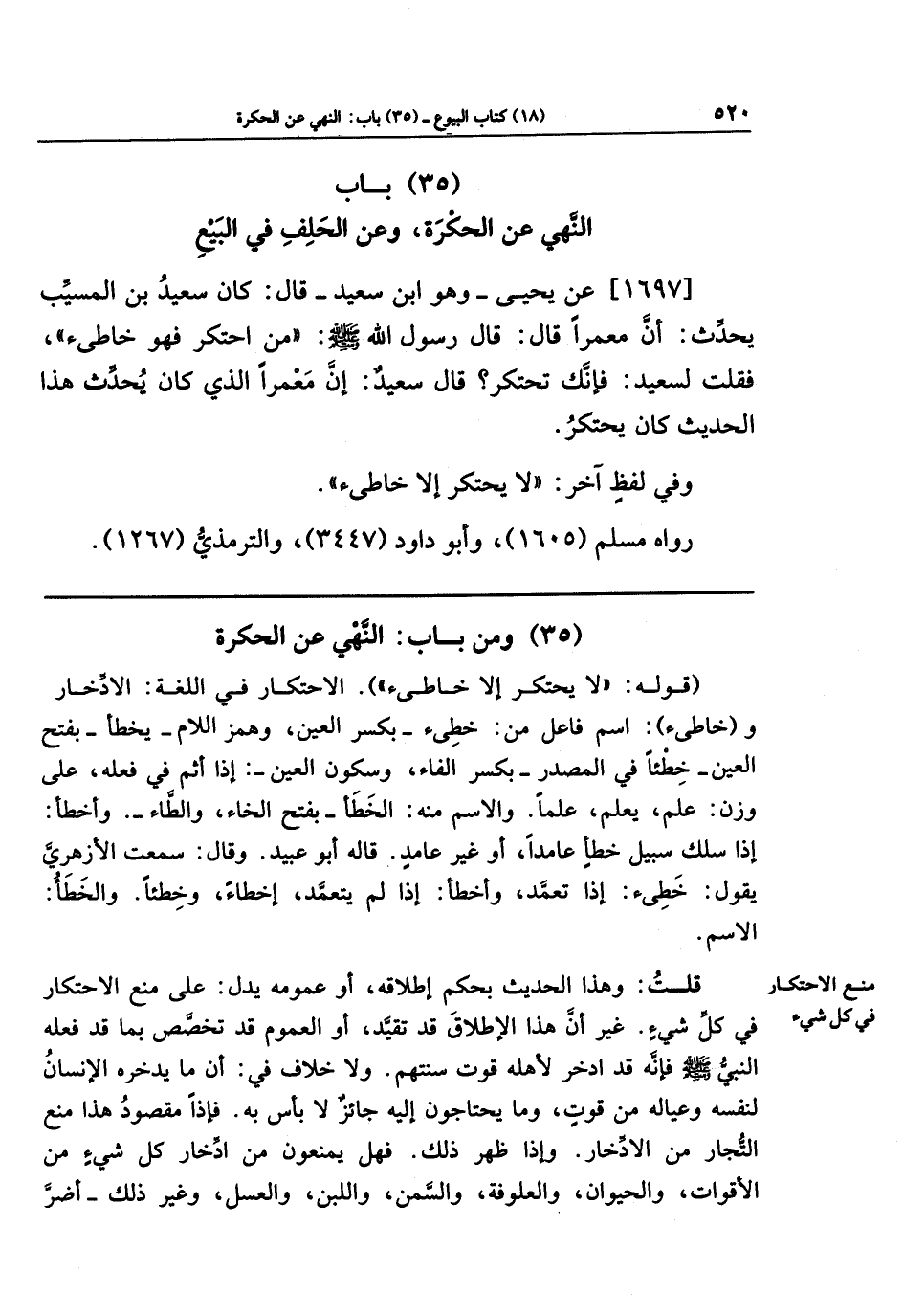 (35) باب النَّهي عن الحكرة، وعن الحلف في البيع