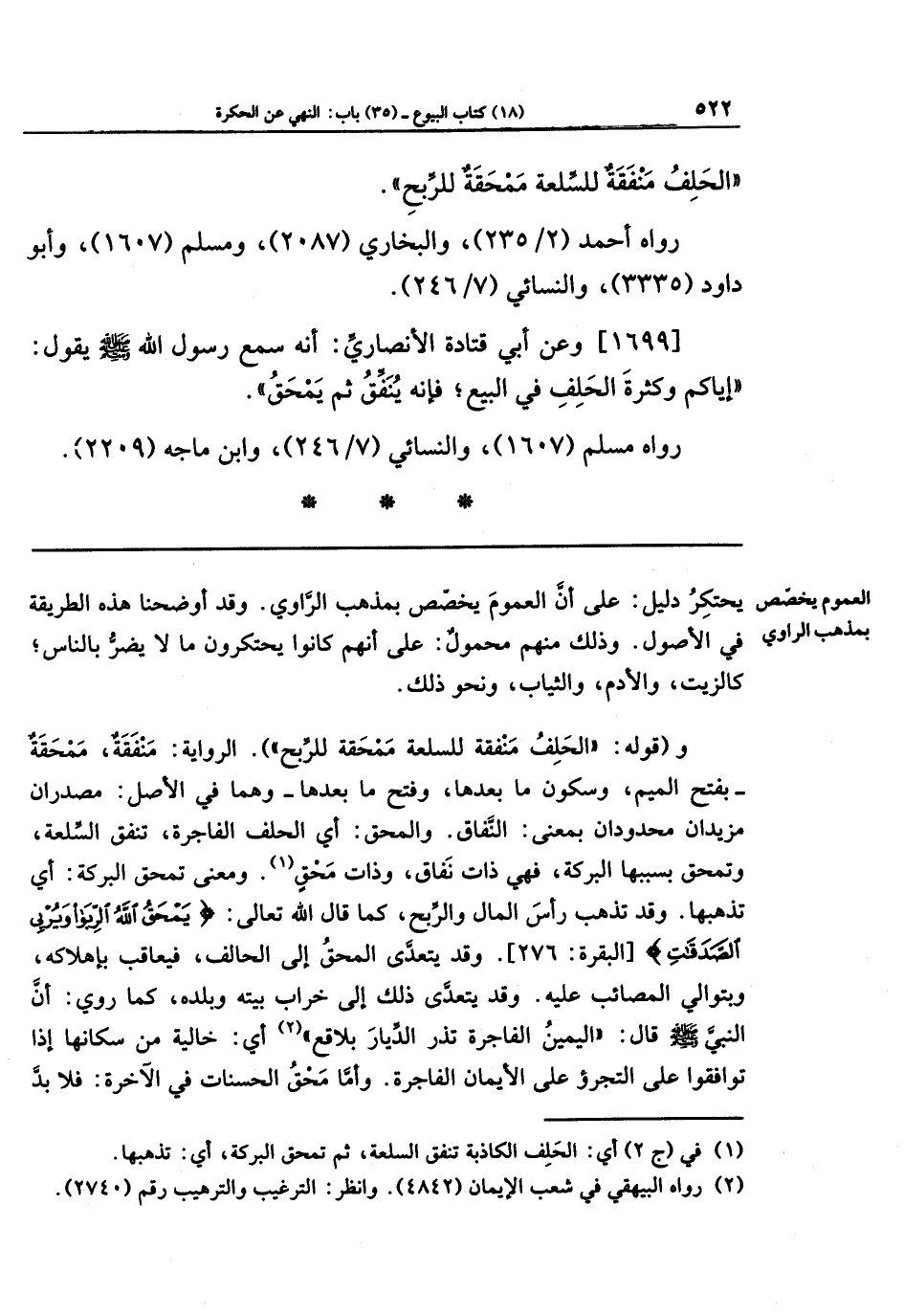[1699] وعَن أَبِي قَتَادَةَ الأَنصَارِيِّ: أَنَّهُ سَمِعَ رَسُولَ اللَّهِ صَلَّى اللَّهُ عَلَيهِ وَسَلَّمَ يَقُولُ: إِيَّاكُم وَكَثرَةَ الحَلِفِ فِي البَيعِ، فَإِنَّهُ يُنَفِّقُ ثُمَّ يَمحَقُ.
