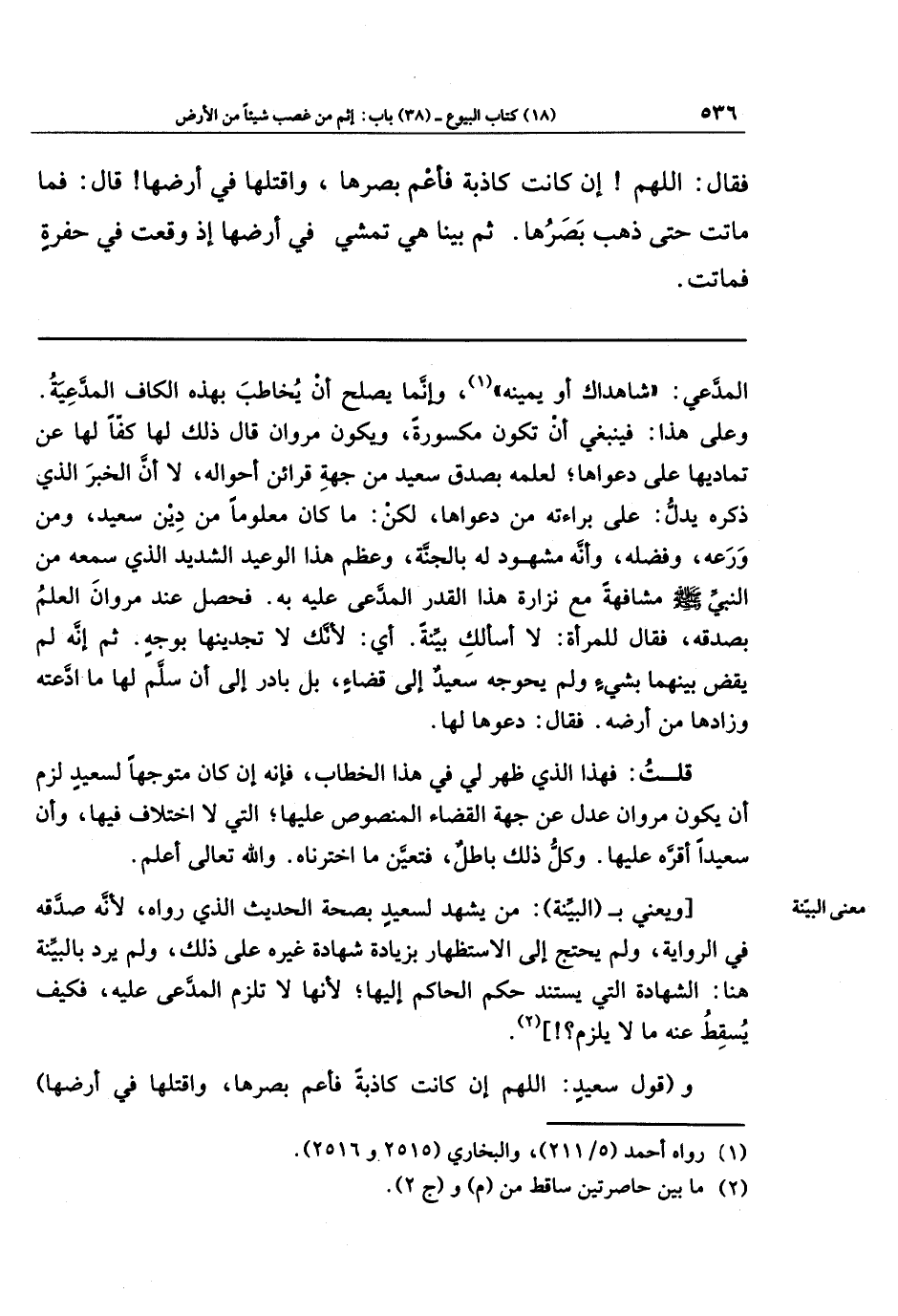 ويعني بـ (البينة): من يشهد لسعيد بصحة الحديث الذي رواه، لأنه صدقه في الرواية، ولم يحتج إلى الاستظهار بزيادة شهادة غيره على ذلك، ولم يرد بالبينة هنا: الشهادة التي يستند حكم الحاكم إليها؛ لأنها لا تلزم المدّعى عليه، فكيف يسقط عنه ما لا يلزم؟ (¬2)