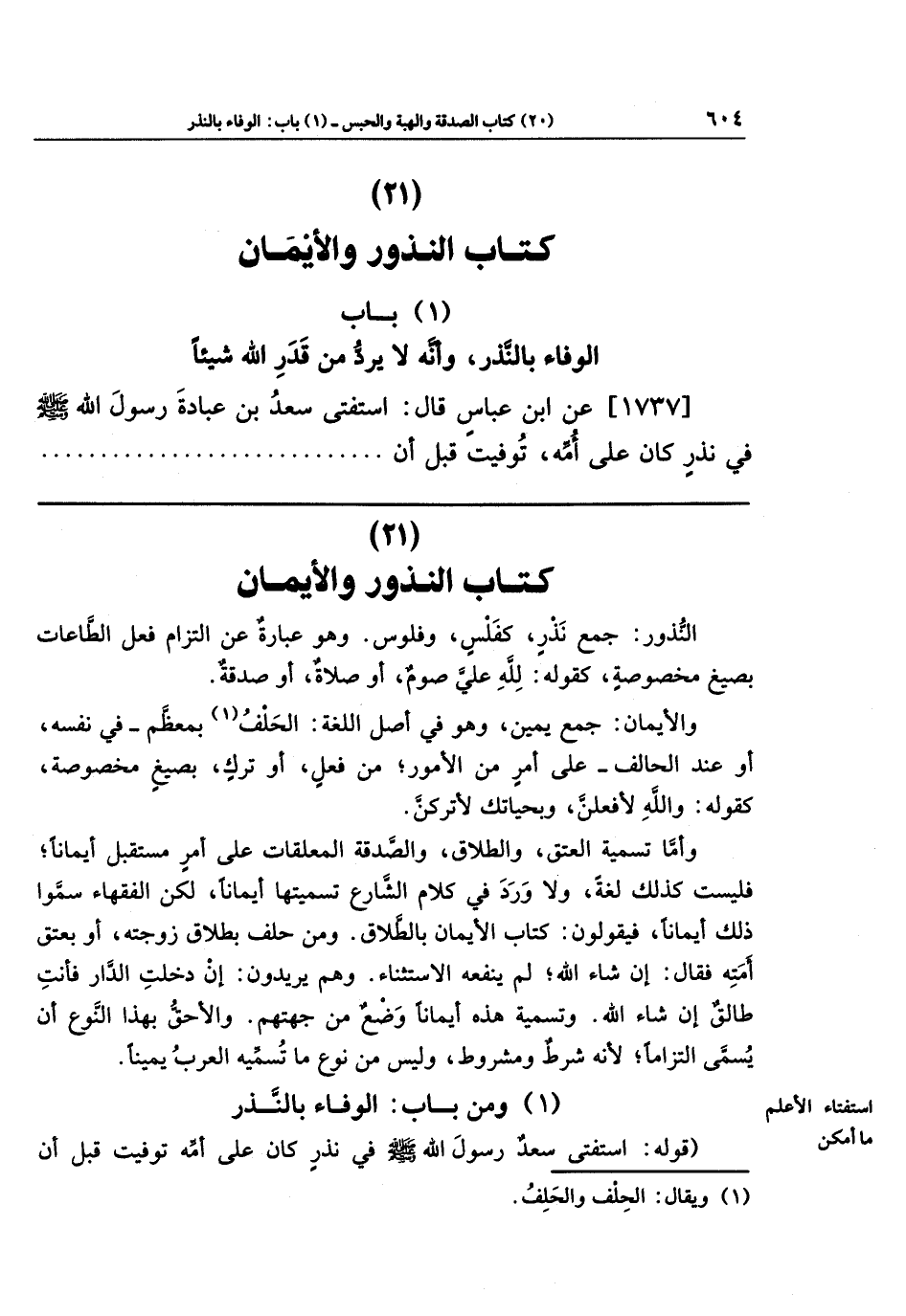 (1) باب الوفاء بالنذر، وأنه لا يرد من قدر الله شيئا